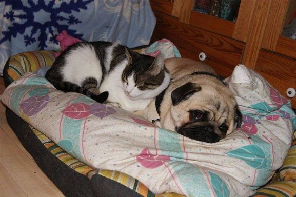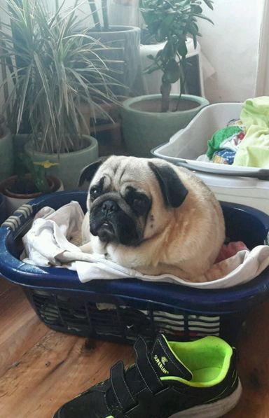 Theo Würschtelberger-Schneider zog im zarten Alter von 8 Wochen bei uns ein. Auf diesem Bild war er gerade mal zwei oder drei Tage bei uns. Unser "kleiner, großer" Chef hatte sich schon damals als ein Herzensbrecher herausgestellt. Wie er zu uns kam, ist eine lange Geschichte. Wir wurden damals von dem Inserenten in dem Glauben gelassen, das der kleine Mann von einem Nachbarn verkauft wird, der kein Internet hat. Das dicke Ende kam ca. 4 Monate später, als wir plötzlich einen mehr als dicken, großen Brief von der Polizei im Briefkasten hatten. Wir waren einem Betrüger aufgesessen, der einen gut florierenden Welpenhandel betrieb. Ist aber egal, Theo ist nun elfeinhalb Jahre bei uns, war noch nie in seinem Leben, bis auf eine kleine Augenverletzung, die er sich beim Raufen mit einem unserer anderen Vierbeinern zuzog, krank. Wir hoffen, dass das auch so bleibt. Er ist zwar mittlerweile, mopstypisch, fürchterlich stur, wenn er etwas nicht mag oder will, aber dafür wird er geliebt bis er blau anläuft.